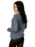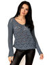 Детали: круглый вырез горловины, длинный рукав в рубчик, спущенная линия плеча