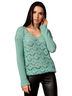 Детали: круглый вырез горловины, длинный рукав в рубчик, спущенная линия плеча