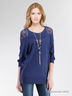Стильный джемпер с короткими рукавами и округлым вырезом горловины. Модель свободного кроя. Изделие выполнено из качественного материала привлекательной расцветки и декорировано бижутерией.