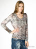 Джемпер прямого кроя из нежной шелковистой ткани. Круглая горловина. Длинные рукава. Полочка оформлена стразами и аппликациями.