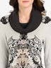 Детали: ворот-хомут в крупный рубчик, длинный прямой рукав, изделие декорировано оригинальным набивным рисунком