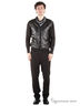 Стильный мужской джемпер с эффектом двойки. Ворот-хомут, длинный рукав и низ изделия на манжете, спереди планка с пуговицами. Отличная модель для молодежи.