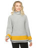 Джемпер женский из мягкой пластичной пряжи свободного объема со спущенным плечом, широким рукавом и высоким, широким воротом.