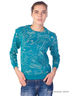 Детали: круглый вырез горловины, длинные узкие рукава, подол посажен на резинку.