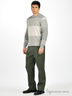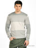 Детали: округлый вырез горловины дополнен трикотажной лентой в рубчик, длинный прямой рукав