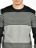 Детали: округлый вырез горловины дополнен трикотажной лентой в рубчик, длинный прямой рукав
