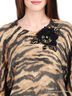 Детали: полочка декорирована текстильным цветком со стразами и стеклярусом, широкий цельнокроеный рукав