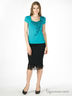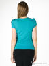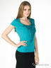 Приталенный трикотажный джемпер. Глубокий круглый вырез. Короткие рукава. Рукав и полочка оформлены декоративной композицией из страз, бусин и нашивок в цвет джемпера.