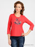 Стильный джемпер из тонкого, приятного на ощупь трикотажа. Округлый вырез горловины. Облегающие рукава 3/4. Полочка декорирована оригинальным принтом и стразами. Яркий вариант на каждый день!