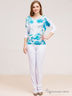 Джемпер с рукавами 3/4 и округлым вырезом горловины. Модель свободного кроя выполнена из качественного материала привлекательной расцветки. Будет отлично сочетаться с брюками и юбками.