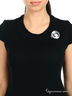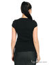 Гладкий вязаный джемпер с округлым вырезом горловины и короткими рукавами. Вырез, рукава и низ изделия оформлены в рубчик. Изделие украшено декоративной пуговицей на полочке.