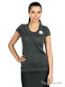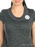 Гладкий вязаный джемпер с округлым вырезом горловины и короткими рукавами. Вырез, рукава и низ изделия оформлены в рубчик. Изделие украшено декоративной пуговицей на полочке.
