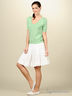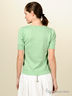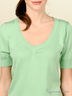 Детали: короткий рукав; V-образный вырез; окантовка выреза, манжеты и нижняя резинка в рубчик