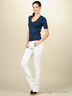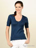 Детали: короткий рукав; V-образный вырез; окантовка выреза, манжеты и нижняя резинка в рубчик