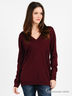 Повседневный пуловер из слегка эластичного шерстяного трикотажа. V-образный вырез горловины, длинный рукав, разрез с завязками на спинке. Будьте стильной и женственной.