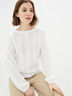 Джемпер с ажурным узором. Изделие выполнено из хлопкового трикотажного полотна. Горловина «лодочка». Крой свободный. Спущенные плечи. Длинные рукава, расширены к манжете. Края связаны резинкой. Длина изделия - 60 см.