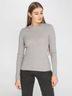 Облегающий джемпер выполнен плотной резинкой. Изделие выполнено из вискозной пряжи. Длинные рукава. Горловина отделана плотным переплетением с добавлением люрексовой нити.