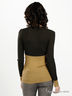 Оригинальный трикотажный джемпер в рубчик. Круглая горловина. Длинные рукава. Сочетание темно и светло коричневого и завязки на полочке создают ощущение двойки.