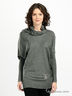 Стильный полушерстяной джемпер кроя летучая мышь. Широкий воротник хомут. Длинные рукава. Низ изделия посажен на манжет.