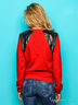 Стильный трикотажный джемпер с кожаными треугольными вставками. Удобная и комфортная модель прямого покроя с длинными рукавами и округлым вырезом горловины. Стильный вариант для современной девушки.