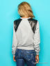 Стильный трикотажный джемпер с кожаными треугольными вставками. Удобная и комфортная модель прямого покроя с длинными рукавами и округлым вырезом горловины. Стильный вариант для современной девушки.