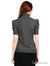 Детали: отложной воротник стойка, застежка на пуговицы, короткие рукава, низ изделия и края рукавов оформлены в рубчик