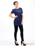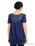 Детали: короткий рукав; вставка на полочке и спинке выполнены из ажурного материала; снизу изделие декорировано оригинальной вязкой