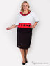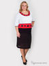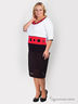 Изящный джемпер из полувискозного материала. Округлый вырез горловины. Укороченные рукава с цветной окантовкой манжет. Полочка декорирована крупными цветными вставками.
