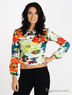 Яркий джемпер сделает Вас заметной в любой компании. Мягкая, приятная на ощупь, тонкая эластичная ткань. Прямого силуэта. Округлый вырез горловины обработан эластичной лентой и добавлен складками. Длинный прямой рукав.