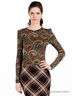 Детали: округлый вырез горловины дополнен трикотажной лентой, длинный прямой рукав