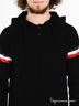 Детали: капюшон с регулирующим шнурком, округлый вырез горловины, застежка на две пуговицы, длинный рукав с контрастными полосками