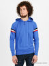 Детали: капюшон с регулирующим шнурком, округлый вырез горловины, застежка на две пуговицы, длинный рукав с контрастными полосками