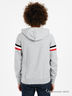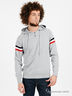 Детали: капюшон с регулирующим шнурком, округлый вырез горловины, застежка на две пуговицы, длинный рукав с контрастными полосками
