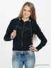 Классический джемпер прямого кроя из плотной трикотажной ткани. Капюшон на кулиске. Застегивается на молнию. Длинный прямой рукав на трикотажной резинке. Два врезных кармана.