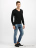Детали: V-образная горловина, длинные рукава с манжетами в рубчик