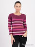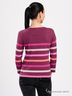 Джемпер в разноцветную полоску в рубчик, с длинными рукавами, 3 пуговицами-"рыбками" на отрезной линии и планками внизу рукавов. Боковые разрезы 6 см.