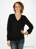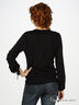 Легкий трикотажный джемпер свободного покроя. Декорирован золотым люрексом. V-образная горловина. Длинные рукава с завязками на манжетах.