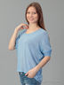 Джемпер с рукавами 3/4 и округлым вырезом горловины. Модель свободного кроя выполнена из качественного материала привлекательной расцветки. Отличный вариант на каждый день.