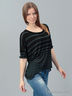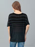 Очаровательный джемпер с округлым вырезом и рукавами 3/4. Модель выполнена из нежного материала, расцветка в полоску. Изделие свободного покроя. Практичный и комфортный вариант на каждый день.
