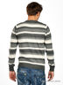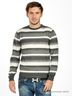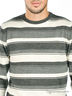 Стильный вязаный джемпер с округлым вырезом горловины и длинными рукавами. Ворот, манжеты рукавов и низ изделия выполнены из трикотажной резинки, оформленной в рубчик. Джемпер украшен принтом в полоску.
