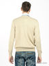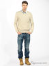 Детали: v-образный вырез горловины дополнен трикотажной лентой в рубчик, длинный прямой рукав и низ изделия на трикотажной манжете в мелкий рубчик