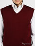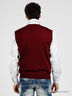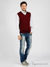 Превосходный вязаный жилет с V-образным вырезом горловины. Все вырезы изделия выполнены из трикотажной резинки оформленной в рубчик.