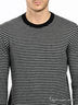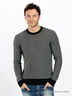 Стильный вязаный джемпер с округлым вырезом горловины и длинными рукавами. Ворот, манжеты рукавов и низ изделия выполнены из трикотажной резинки оформленной в рубчик.