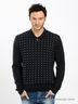 Очаровательный мужской джемпер, с длинным рукавом, отложным воротником и застежкой на молнию. Манжеты рукавов и низ изделия выполнены из трикотажной резинки оформленной в рубчик. Изделие декорировано фактурными вязаными полосками.