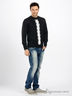 Очаровательный мужской джемпер с округлым вырезом горловины. Манжеты рукавов, низ изделия и ворот выполнены из трикотажной резинки оформленной в рубчик. Полочка украшена фактурными узорами.