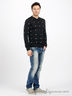 Стильный вязаный джемпер с округлым вырезом горловины и длинными рукавами. Ворот, манжеты рукавов и низ изделия выполнены из трикотажной резинки оформленной в рубчик. Джемпер украшен декоративными фактурными полосками.