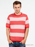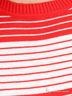 Детали: округлый вырез горловины, короткие рукава, ворот, низ и манжеты из рельефного материала, стильный принт полоска-тренд сезона.