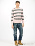 Детали: округлый вырез горловины дополнен трикотажной лентой в рубчик, длинный прямой рукав и низ изделия на трикотажной манжете в мелкий рубчик