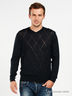 Детали: V-образный вырез горловины, длинные рукава с манжетами из рельефного материала, полочка из ажурного трикотажа в форме ромба-аргайла.