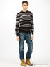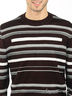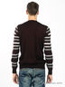Стильный вязаный джемпер с округлым вырезом горловины и длинными рукавами. Ворот, манжеты рукавов и низ изделия выполнены из трикотажной резинки оформленной в рубчик. Джемпер украшен декоративными фактурными полосками.